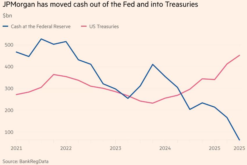 摩根大通將現金從美聯儲轉移到美債