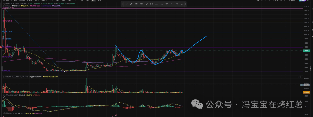 BCH逆勢走得很規律,超賣就反彈、超買就回落,昨天成功突破600的阻力位,現在BCH經過1年多的時間橫盤整理,形態像極了6月份的bnb,後續要是能站穩 650、衝破 730,可能從震盪變成單邊行情,但現在它在結構高點,逆勢幣操作難度也大,按我們策略來,別盲目入手。