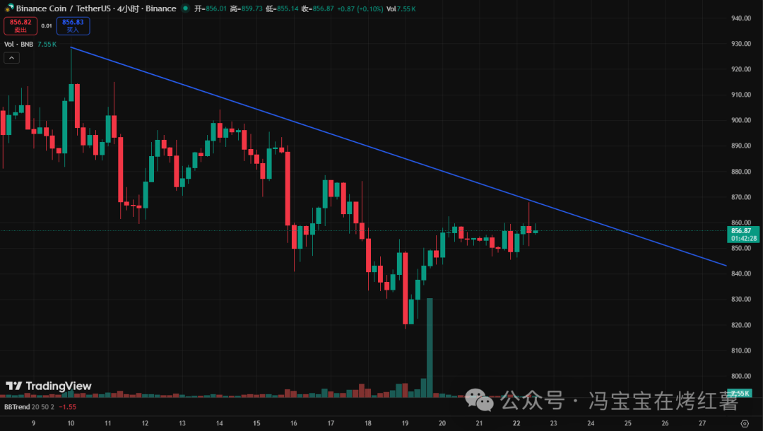 BNB最近的表現還算不錯,但這種平臺幣的行情一般是發生在每年的7-8月份,市場無題材可炒的時候開始炒平臺幣,後面至少要創造一個雙重頂,所需要的時間會長一些。