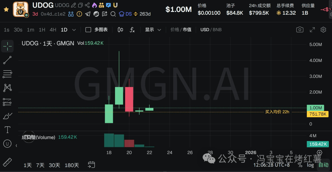 雖然慢、收益少,但至少能活到下一輪。比如昨天70多萬抄$UDOG,短期會盤整,漲也有限,進場就做好長期持有準備。