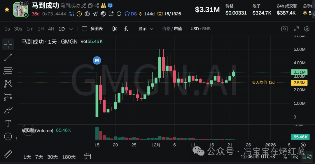 龍頭都衝到800萬市值了,其他仿盤項目趁勢突破100萬應該不難吧?回購消息才炒了兩天,市場一降溫,機會反而浮現。鏈上交易依然有機會賺錢,但二級市場坑太多,處處是陷阱,真的越來越難玩了。