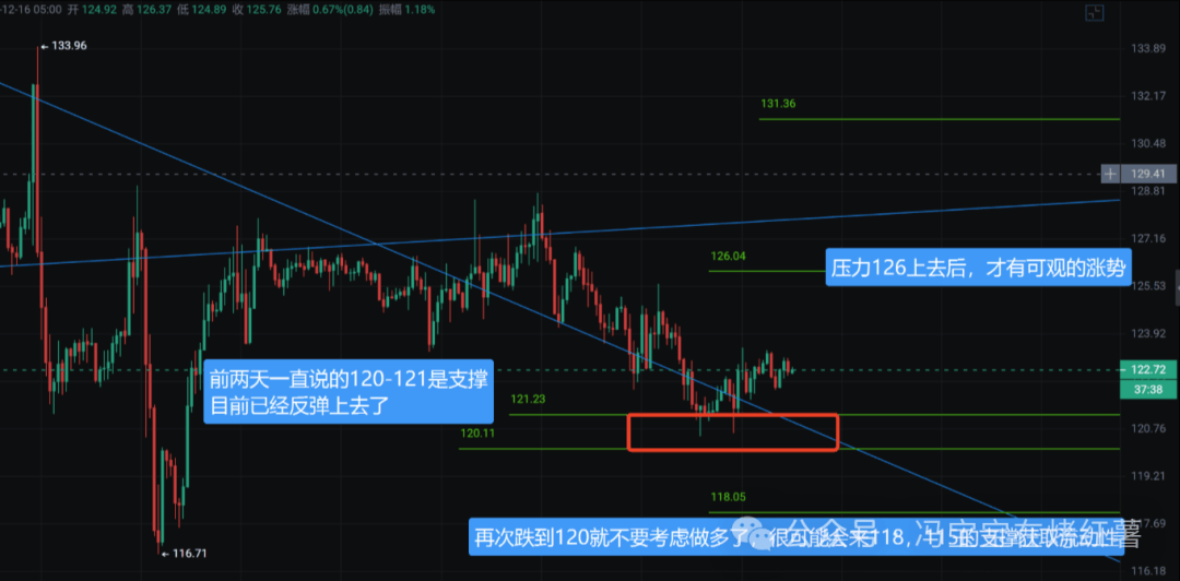 Solana正如前期分析,在120–121支撐區域出現反彈。若價格再次回落至120附近,由於該支撐已生效一次,第二次下探時力度可能減弱,可關注118及115附近再次佈局多單的機會。上方需突破126壓力,否則上漲動能將受限。
