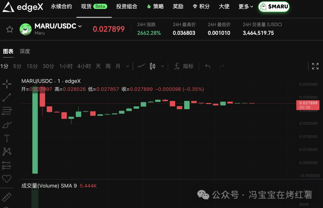 edgex的meme幣maru市值2.78億刀,在這個行情下很牛逼了,超出了我預期。更重要的是,maru的市值可以直接對標edgex本幣。edgex約等於10倍的maru市值 edgex本幣預估27億刀。