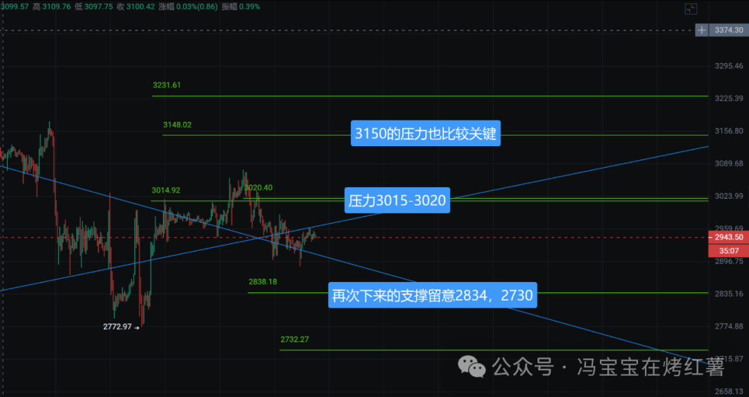 以太坊支撐方面,繼續關注2835與2730位置。上方壓力首先看3015–3020區域,若突破則有機會挑戰3150。該位置附近可能出現回調,需留意。