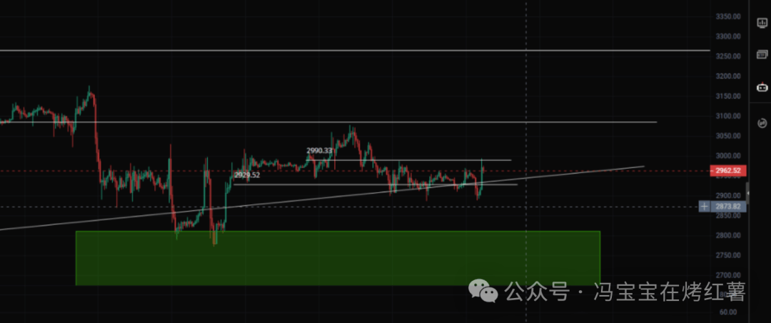 以太坊的走勢基本和比特幣同步,比特幣還是主導的核心。以太坊當前結構比較清晰,在下方支撐穩固、跌不下去的情況下,如果能成功站上2993,就能進一步挑戰3078區域。