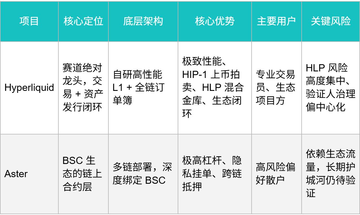 Hyperliquid憑藉自研高性能L1、全鏈訂單簿、資產發行閉環與HLP機制,仍是賽道綜合實力最強項目,適合追求深度與效率的專業用戶,但其結構集中帶來系統性風險。Aster依賴BSC生態紅利,短中期爆發力強,但長期獨立競爭力有限。Lighter代表技術天花板型路線,公平性和抗MEV能力突出,但商業模式仍在驗證中。EdgeX偏向底層基礎設施優化,為高頻與專業交易提供性能潛力,但市場接受度與生態建設仍需時間。