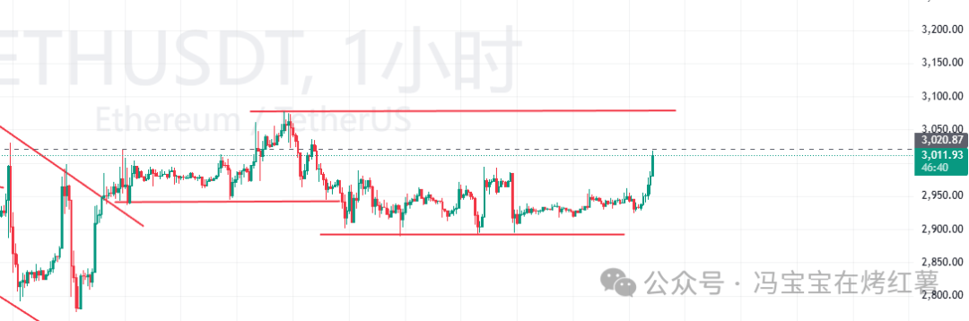 今日重點:以太坊關注2960位置,上方壓力位依次是2993、3031、3078附近。若小時收線跌破2960,下方支撐位2923、2893、2857附近。