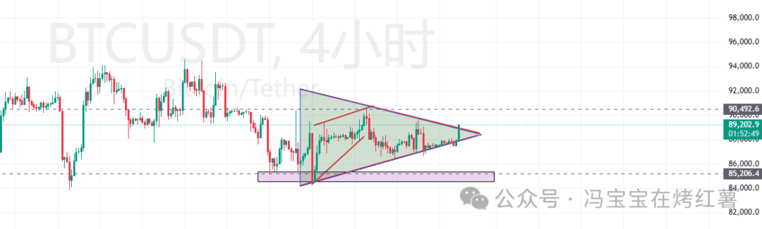 有個空單性價比不錯:現價89000-90000區間可以進場做空,防守位在91000。一是小級別已經加速上漲,很可能是誘多“騙炮”;二是90000附近仍是近期強壓力位,拋壓重,很難輕鬆突破。