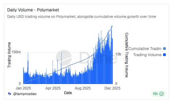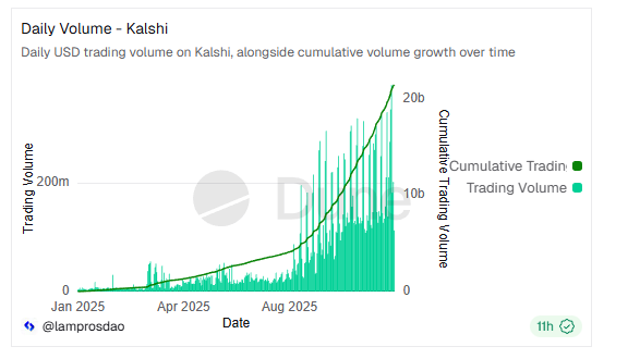 從實際的發展情況來看,預測市場的確是 2025 年為數不多的「牛市」賽道(與穩定幣類似)。在近幾個月整個加密市場萎靡的狀態下,以 Polymarket 和 Kalshi 為首的預測市場仍在快速的瘋狂生長。