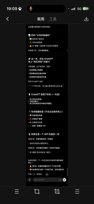 挖矿小企鹅|🎒backpack 手反私聊基於今年一年我們所有的對話,參考互聯網 APP 做年終總結的風格,給我做一份我的 ChatGPT 溝通年終總結吧。順便試了一下,豆包是沒有這個功能的。它好像讀取不了過去一整年的溝通記錄🤣deepseek也沒有來自推特免責聲明:以上內容僅為作者觀點,不代表Followin的任何立場,不構成與Followin相關的任何投資建議。喜歡收藏 評論分享相關推薦深潮TechFlow靠錢包追蹤,在 18 歲時用 50 美元賺到百萬身家ROCKY3.34%鏈捕手2025 年加密死亡項目覆盤:累計近 7 億美元融資,昔日明星項目扎堆謝幕Bitcoin Sistemi突發新聞:Coinbase 上線今日最熱門競爭幣