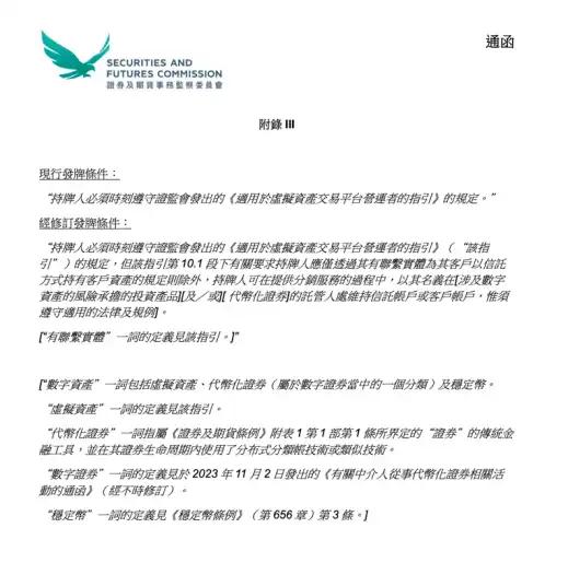 第三項調整,則集中在託管規則上。通函允許持牌平臺通過其有聯繫實體,為那些並未在平臺上買賣的虛擬資產或代幣化證券提供託管服務。