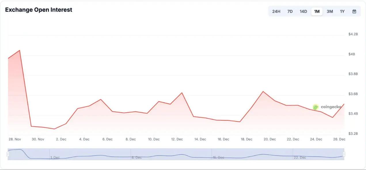 與中心化交易所的差距依然顯著。Deribit 在全球範圍內佔據主導地位,每日未平倉合約超 30 億美元。