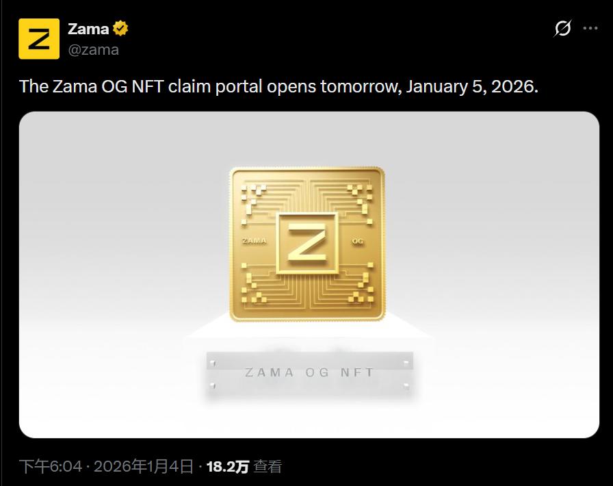 Zama:OG NFT 認領門戶將於今日開放深潮TechFlow深潮 TechFlow 消息,1 月 5 日,據官方公告,隱私計算項目 Zama Protocol 表示,Zama OG NFT 認領門戶將於 2026 年 1 月 5 日開放。來源免責聲明:以上內容僅為作者觀點,不代表Followin的任何立場,不構成與Followin相關的任何投資建議。喜歡收藏 評論分享相關推薦Foresight News美法警署出售沒收比特幣,是否違反特朗普行政令?BTC0.94%白话区块链馬杜羅真的藏了600億美元BTC嗎?BTC0.94%All-in station美國被懷疑剛剛出售了在“武士錢包”案件中查獲的比特幣。BTC0.94%