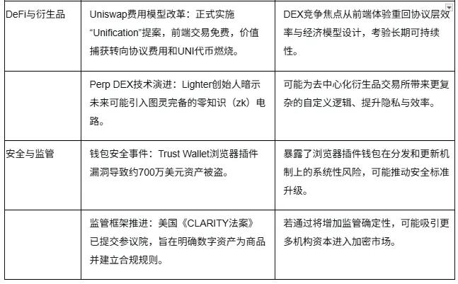 立法進程待定:旨在明確數字資產商品屬性、劃分美國SEC與商品期貨交易委員會(CFTC)監管職責的《數字資產市場清晰度法案》(CLARITY Act),目前仍在等待參議院的審議,其在2026年1月能否通過尚不確定。