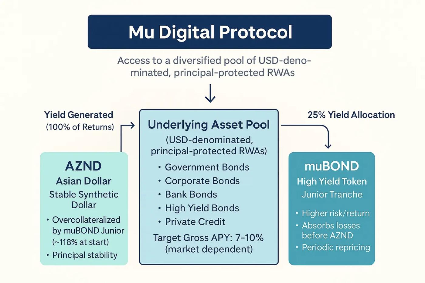 Mu Digital 協議通過雙代幣結構,為 DeFi 用戶提供由美元計價、分散化、且本金受保護的 RWA 投資池的訪問能力。