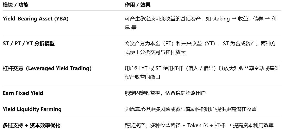 用戶可以通過購買 ST / YT 得到基礎資產的收益權/本金拆分,也可以借入/借出這些代幣,從而實現放大收益或對沖收益率波動。