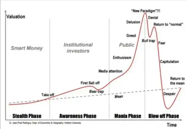 基本面決定價格底線。對大多數代幣而言,這個底線遠低於當前價格。即使在當前估值水平,絕大多數代幣市值仍由投機溢價驅動——即人們因預期未來能高價轉手而賦予的價值。這種溢價與市場整體波動高度相關,並且會隨時間自然衰減。賽道越成熟,投機空間就越小。