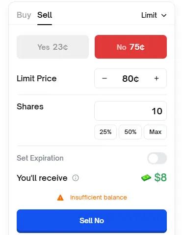提示你餘額不足不能賣,因為你沒有 NO 的兌換券,自然賣不出去。那為什麼價格 82 的位置會有我的賣單呢?