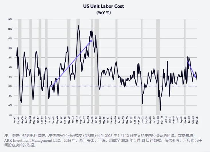 事實上,如果我們對技術驅動型顛覆性創新的研究是正確的,那麼在未來幾年,受週期性和長期性因素的影響,非農生產率增速應會加快至每年 4-6%,從而進一步降低單位勞動力成本的通脹。