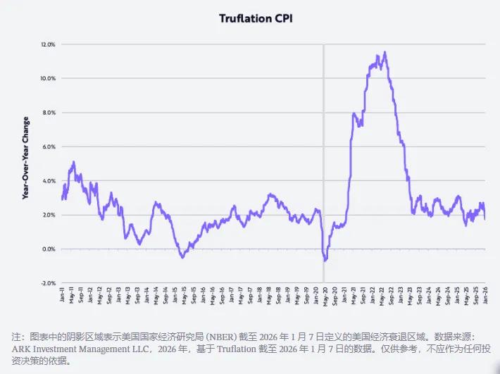 這一改善也得到了驗證:根據 Truflation 衡量的通脹率,最近已同比下降至 1.7%,如下圖所示,比美國勞工統計局(BLS)基於 CPI 計算的通脹率低近 100 個基點(bps)。