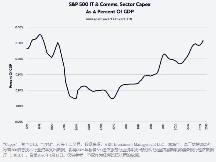 如下所示,人工智能的蓬勃發展正推動資本支出達到自上世紀九十年代末以來的最高水平。