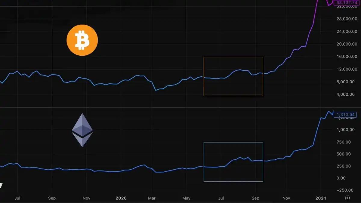 DeFi Summer 時期(2020 年 6 月 - 2020 年 9 月)的 BTC 與 ETH 價格