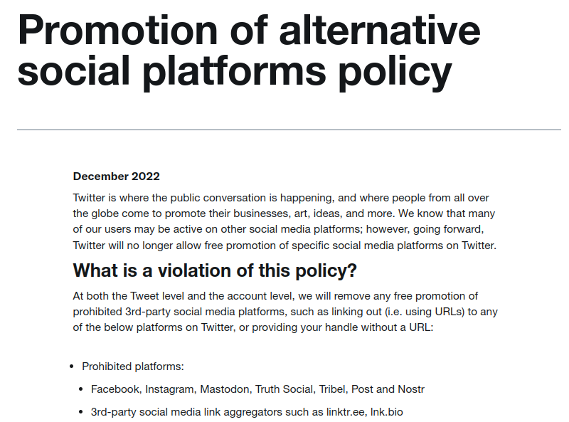 Twitter 的最新禁止政策