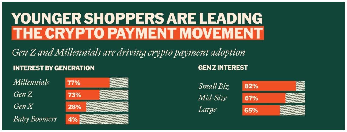 一項值得注意的發現是,90% 的企業表示,如果設置過程與接受信用卡付款一樣簡單,他們願意接受加密付款。