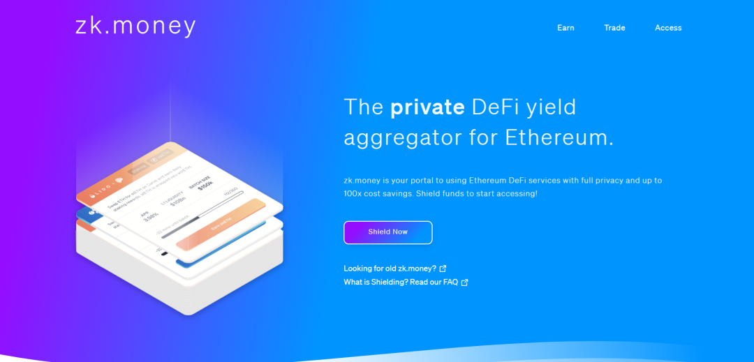 新版的 Zk.Money 則在保留原有的轉賬支付功能添加了隱私 DeFi 功能,用戶的資金在完全保護隱私情況下可用於與主流的 DeFi 協議進行交互,例如使用 ETH 或 DAI 在 AAVE 上進行借貸、在 LIDO 上質押 ETH 獲取獎勵、將 DAI 存入 Yearn 金庫獲取被動收入等。不過 Zk.Money 當前僅支持 DeFi-Earn 功能,Trade 功能仍在開發中。