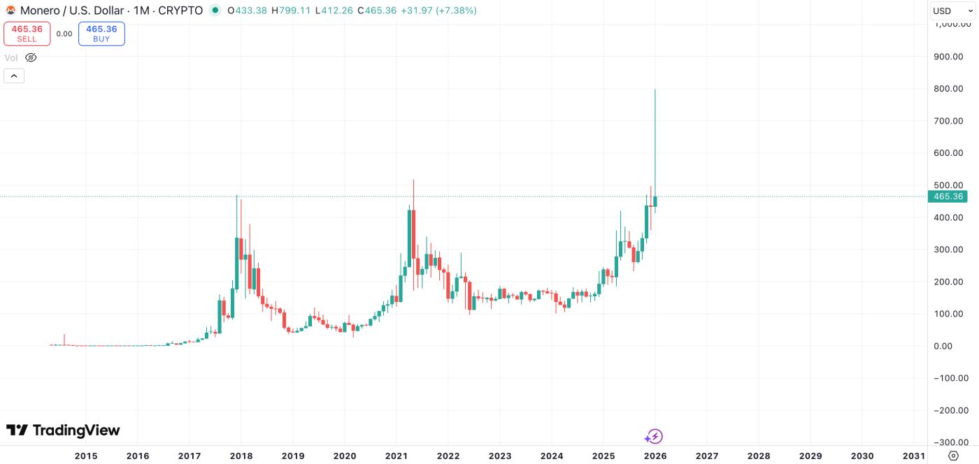 在本輪週期中,以 ZEC 為代表的隱私代幣的上漲開始於 2025 年的 9 月。回頭來看,我們很難在那個時間點找出什麼具體的原因去解釋 3 個月為什麼漲了 20 倍。如果硬要找到一個理由,可能就是因為它「不那麼合規」。