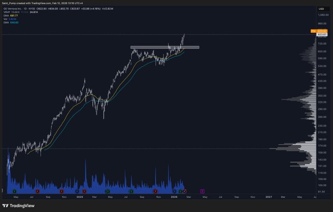 $GEV 突破了長達六個月的交易區間,目前處於價格發現階段。