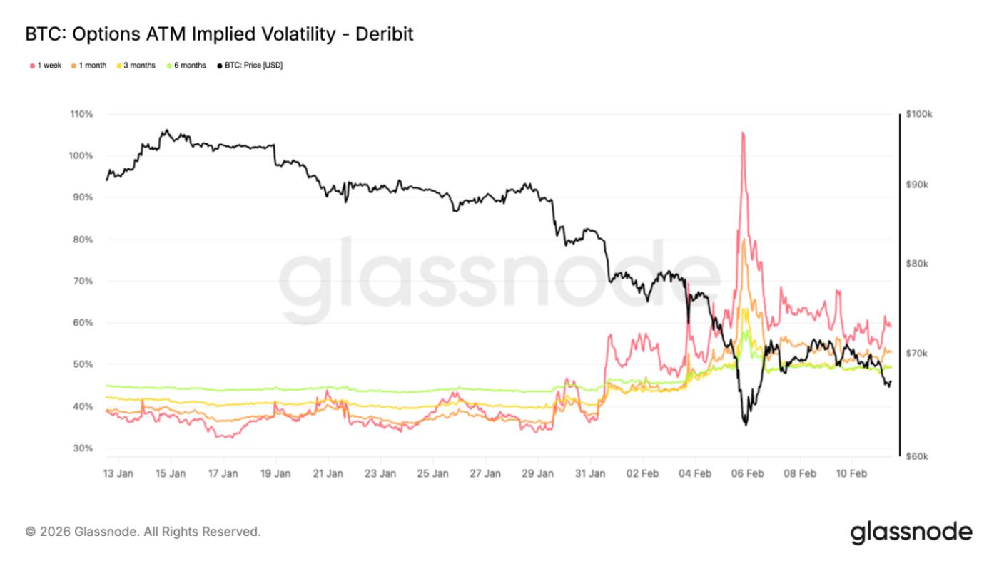 跳得最兇的是前端,1 周隱含波動率直接飆了 20 多個點。隱含波動率是市場對未來波動的預期,這麼大的跳漲,不可能是臨時的。整個期限結構都在重新定價風險。