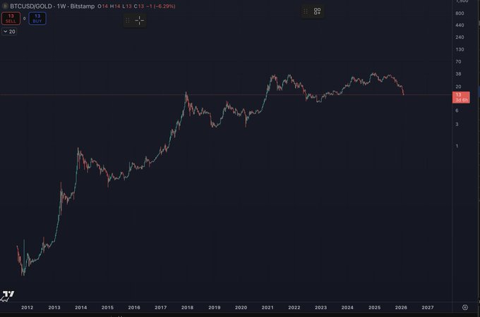 比特幣目前相對於黃金的估值處於歷史最低點。