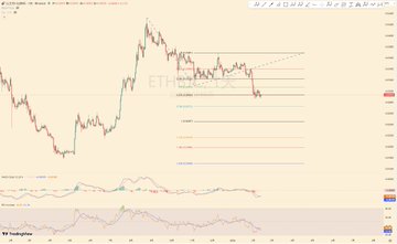 現在的比特幣價格處於一個暫時的平衡態。 位置:回撤到60-72上漲段的斐波那契0.5之後,上漲和下跌都沒有很大的動力; 這個位置買盤和賣盤都沒有多大的動力,甚至合約市場也在被連續下跌爆沒了之後陷入了暫時的冷清; 指標:4H指標已經沒有指引作用,陷入了混沌,1D的指標顯示我們還處於反彈之中,反彈並沒有結束。 均線:目前4H級別以上都是空投形態,但是跌幅放緩,有希望逐級走成震盪交纏(有了重新選擇方向的機會)。 形態:並沒有明顯的形態,放大級別從4H去看這波下跌走的不標準,定義為鋸齒。 情緒:1,已經有看空整個加密行業的了;2,大多數人處於迷茫的狀態。 匯率:E/B的匯率走的依然很好看。 結論:在跌破區域之前,仍然有走出反彈的第三段上漲的可能性,BE都處於黃金口袋且1D級別指標支持繼續上行。對應的操作是,未突破關鍵均線關鍵壓力位之前(未跌破關鍵支撐位之前),單(多空)子見好就收,突破關鍵壓力位(跌破關鍵支撐位)適當格局。
