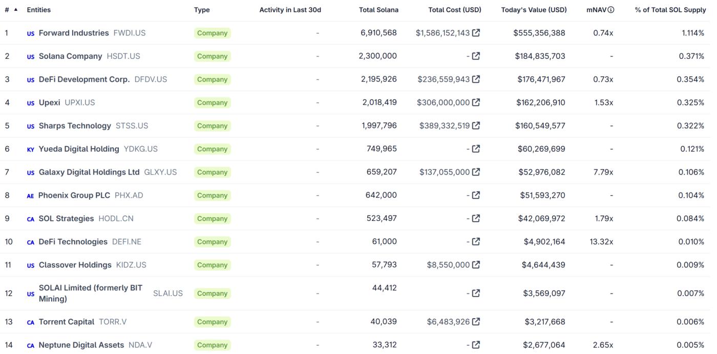 從數字資產財庫(DAT,Digital Asset Treasury)的角度來看,2025 年,DAT 曾模式風靡一時,許多公開交易公司如 Forward Industries、Upexi 和 Sharps Technology 通過私募融資或債務發行,大量購買 SOL 作為財庫資產。