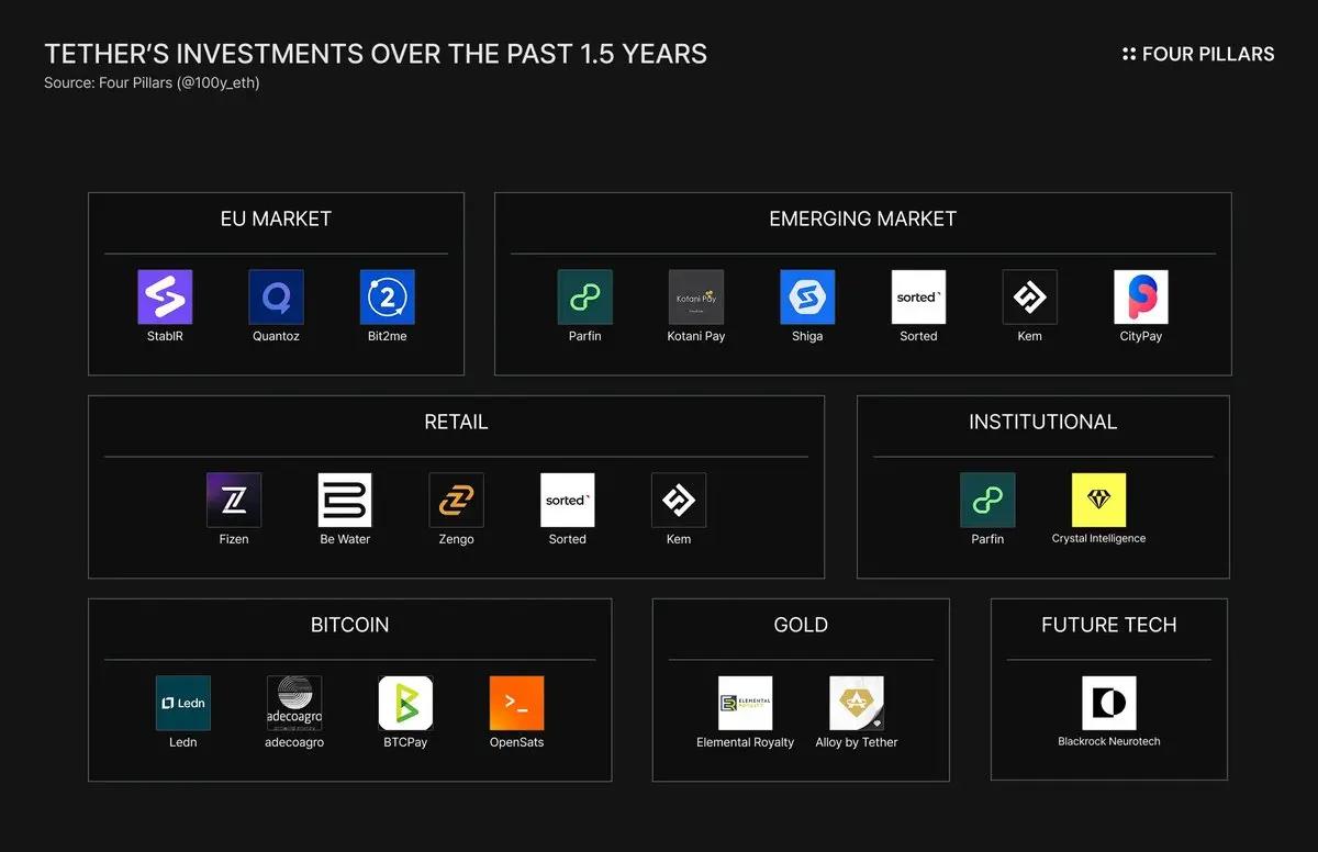 如果說囤積黃金是防禦,那麼對 140 個傳統項目的投資,則是 Tether 的全面進攻。
