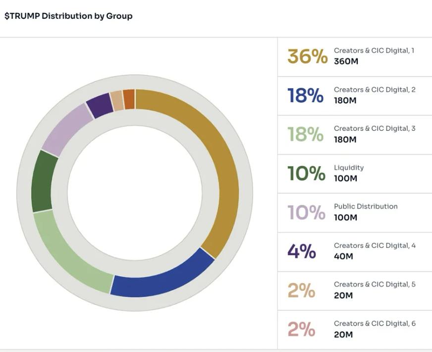 這些「Creators & CIC Digital」組總計 80%(8 億枚),是代幣的主要持有部分。根據官方和可靠來源,這些部分由兩個與特朗普家族相關的實體控制: