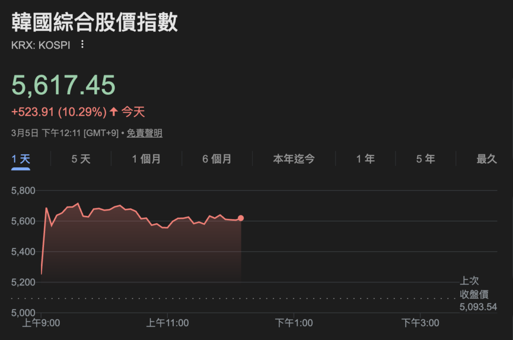 Toggle全球股市在投資人預期伊朗衝突可能降溫的背景下反彈,日經 225 指數開盤跳漲超 2,300 點,目前上漲 2.71%,韓國綜合指數 (KOSPI) 在當局決定啟動規模高達「100 兆韓元以上」的市場穩定計劃下,早盤更是暴力拉升超過 10%,高權值股三星大漲 11% 暫時揮別連日來的恐慌。