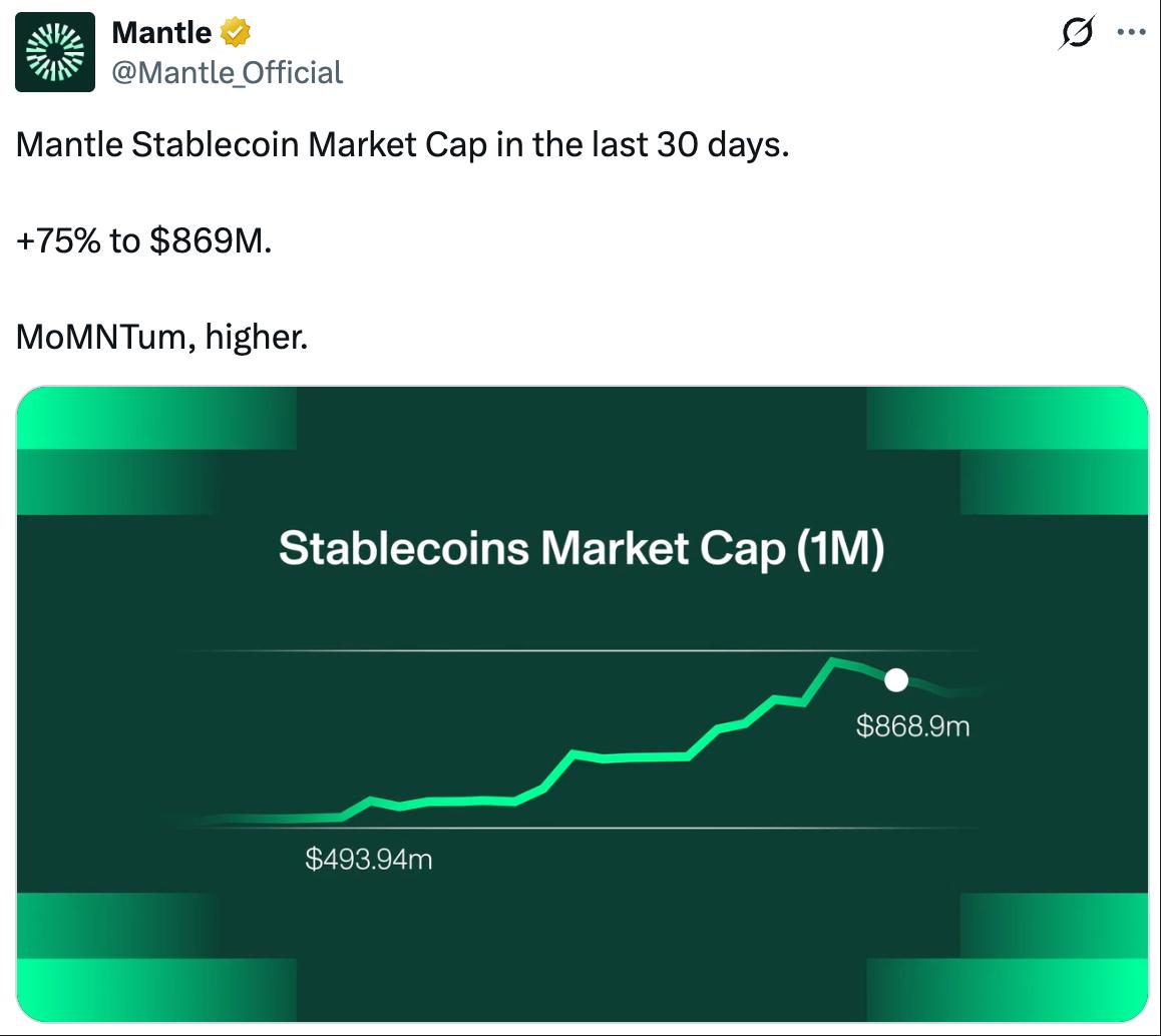Mantle 生態穩定幣市值在30天內增長超 75%,目前穩定幣市值約8.7 億美金深潮TechFlow深潮 TechFlow 消息,03 月 06 日,據 Mantle 官方社媒顯示,Mantle 生態穩定幣市值在過去30天內增長 75%,從大約 4.94 億美金,增長至約8.7 億美金。相关赛道:Layer 2來源免責聲明:以上內容僅為作者觀點,不代表Followin的任何立場,不構成與Followin相關的任何投資建議。喜歡收藏 評論分享相關推薦動區動趨徐明星喊話:ICE 入股 OKX 不是終點,而是傳統與數位金融深度融合的開始PANews對話達利歐:AI正吞噬一切,黃金仍是首選,比特幣還有很長路要走BTC3.4%Crypto BriefingOKB飆升50%,此前紐約證券交易所母公司洲際交易所(Intercontinental Exchange)宣佈OKX估值達到250億美元。