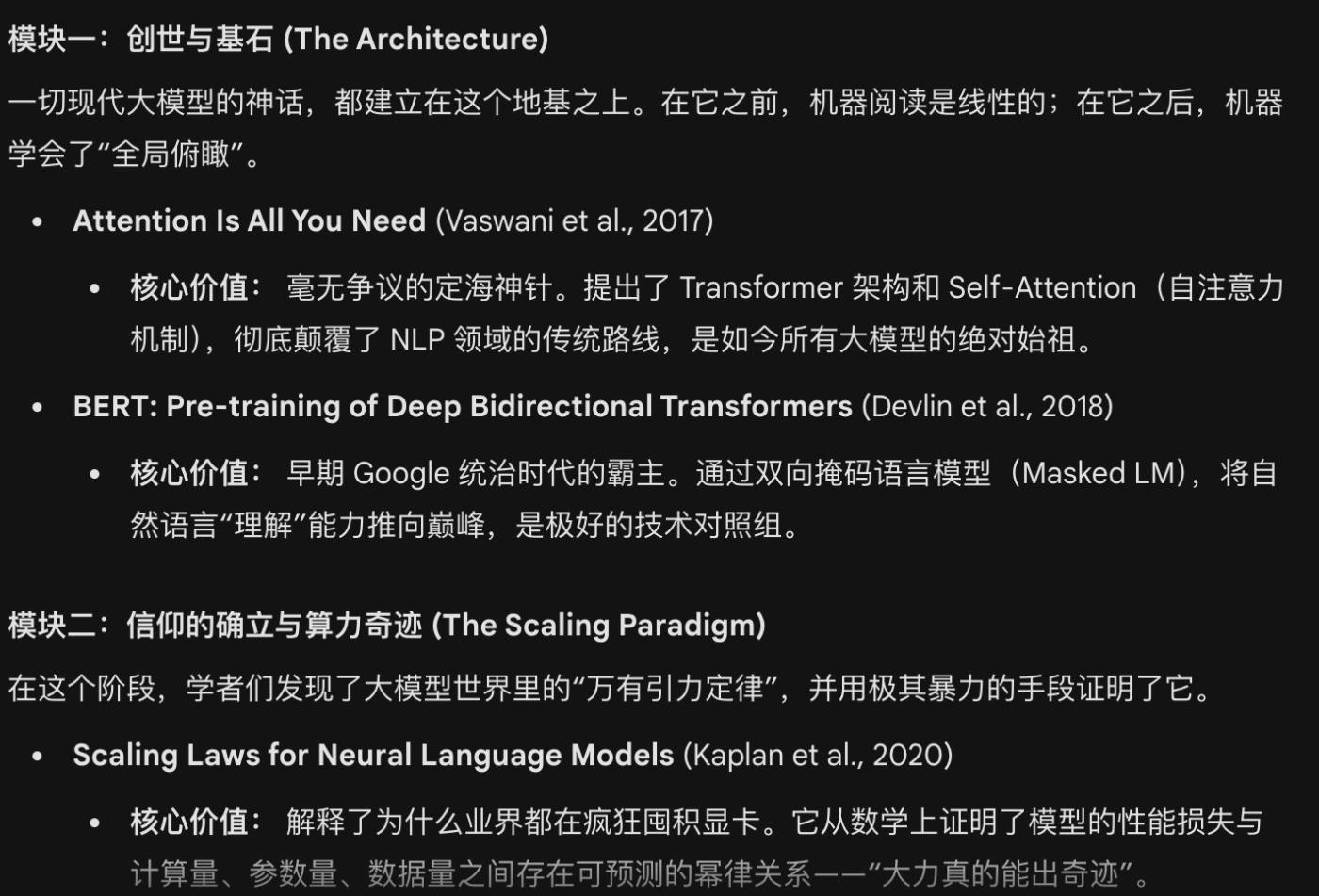 呼叫AI(Gemini / Perplexity): 直接提問:“在 [某細分領域] 中,哪三位是公認的泰山北斗?他們奠定該領域基礎的 1-3 篇高引經典文獻是什麼?”(例如在 LLM 領域,鎖定 Attention Is All You Need 等文獻)。代表了“今生”
