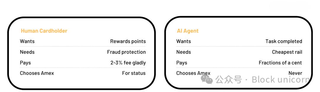 它不積累積分,不追求防欺詐保護,也不渴望獲得黑卡。它只有一個指令:完成任務。而當任務涉及付款時,代理會進行人類永遠不會費心計算的複雜運算:最便宜的路徑、最快的結算、最低的費用。每一次都如此,自動完成,不帶任何情感。