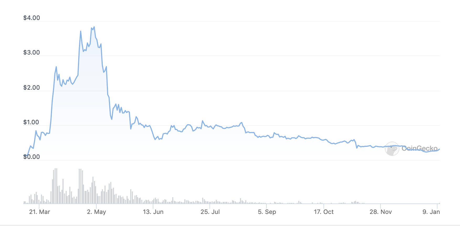而在二級市場方面,在經歷 2021 年 Paradigm 投資新聞曝光後的第一次炒作期後,大部分非稀有 NFT 資產的單價已經回落,目前跌至 0.0015 ETH的地板價(大約價值 2 美元)。