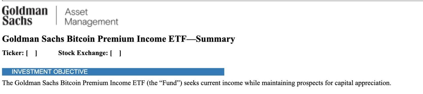 深潮 TechFlow 消息,04 月 14 日,據市場消息,高盛已提交申請,擬推出“比特幣溢價收益 ETF”。