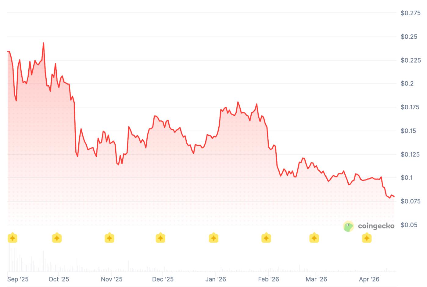 WLFI 上線之後一度被市場熱炒,當天鏈上價格一度突破 0.45 美元,部分二三線交易所內的價格更是曾短線衝高至 1 美元上方,隨後的幾個月內,WLFI 的價格逐步從 0.2 美元上方開始下跌,截至發文暫報約 0.08 美元。