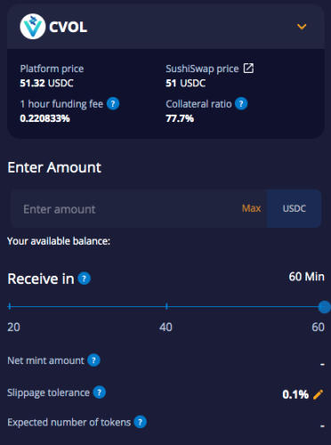 交易者可以在大約 20-60 分鐘的延遲後鑄造或銷燬 $CVOL。
