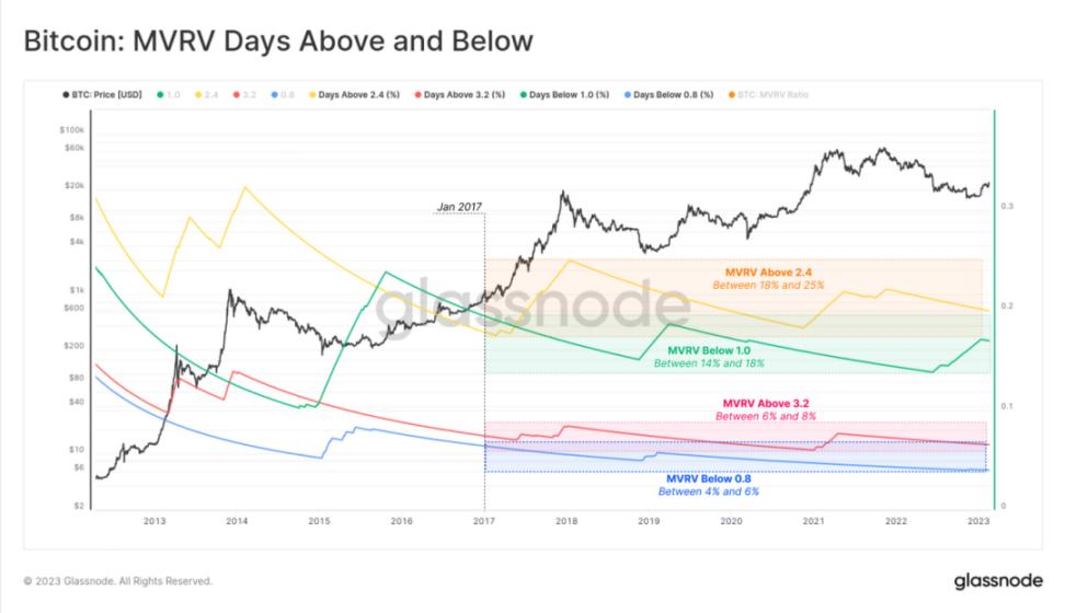 现在我们可以更好地量化这些 MVRV 等级的可能性: