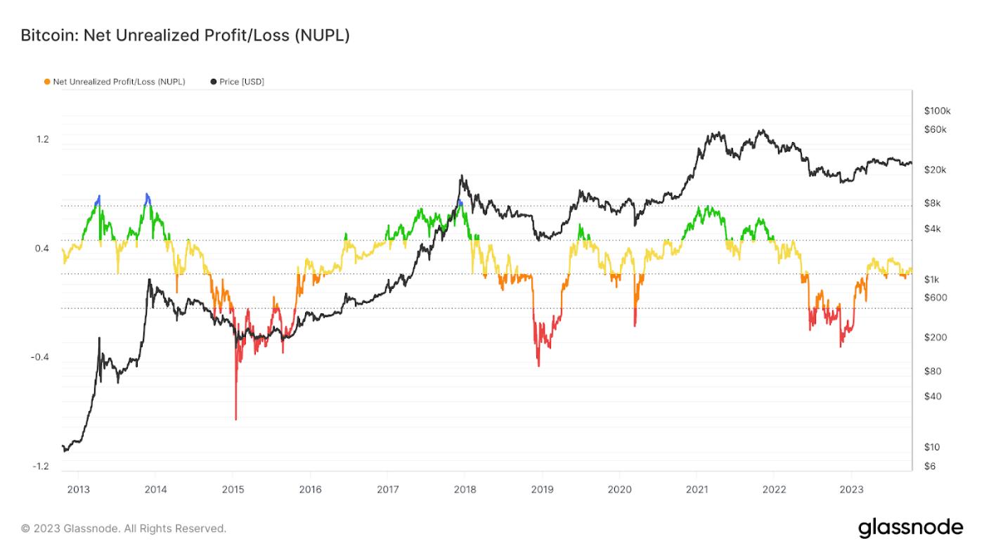 淨未實現利潤/損失(NUPL)是一種鏈上指標,用於計算相對未實現利潤和相對未實現損失之間的差額。