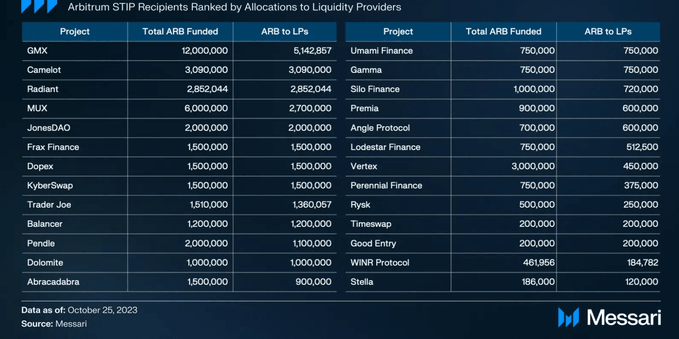 我會密切關注 Camelot、MUX、Radiant、JonesDAO、Vertex 和Pendle,因為這些協議獲得了最多的ARB資助。