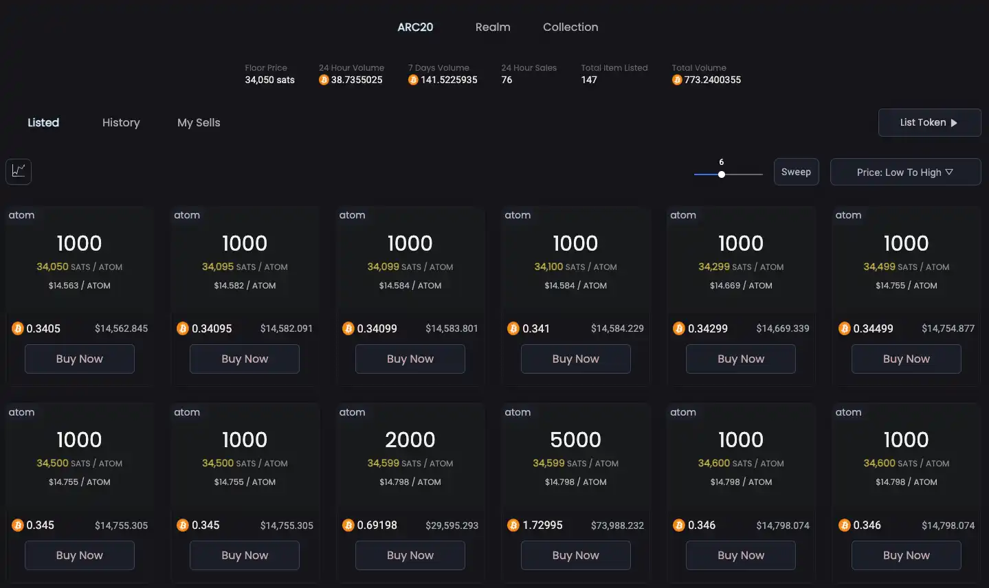 不同於 Cosmos 項目所發行的代幣 Atom,Atomicals 的首個生態代幣$Atom 總量 21000 張,每張 1000 個幣。距今,Atom 也成為了比特幣生態中不可多得的萬倍幣。目前 Atomicals 的大部分流動性和交易量仍集中在 ATOM。