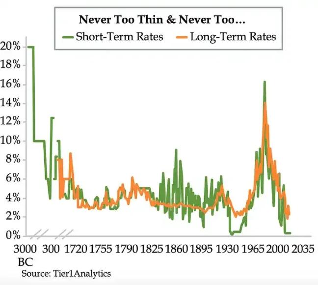 正如您所看到的,為應對 2008 年全球金融危機 (GFC),利率被推至 5000 年來的最低點。